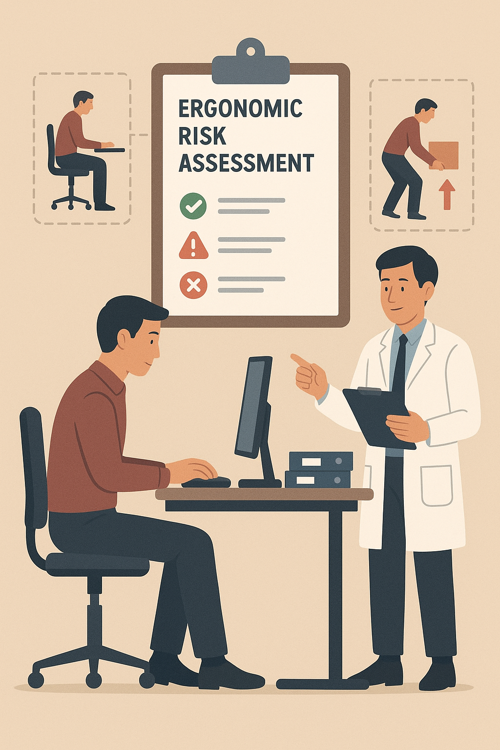 ارگونومی به مطالعه طراحی محیط کار، ابزارها و وظایف شغلی بهگونهای میپردازد که با تواناییها و محدودیتهای جسمی و روانی کارگران سازگار باشد. ارزیابی ریسک ارگونومیک یکی از ابزارهای کلیدی در طب کار برای کاهش اختلالات اسکلتی-عضلانی (MSDs) ناشی از کار است که شایعترین مشکلات سلامت در محیطهای کاری هستند.